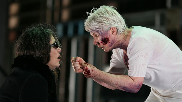 Production still for "The Women of Troy". L-R: Melita Jurisic, Robyn Nevin as Hecuba. Photographer: Tracey Schramm